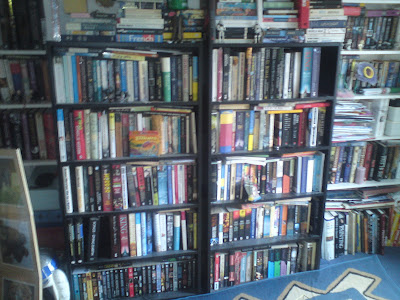 Everything here has been read at least once. These are the books that will probably stay with us forever and a day. Yes, even the books by David Eddings :o) My camera isn't so hot on detail but there is an old and much loved copy of 'Doctor Who and the Dalek Invasion of Earth' that I've had since I was five; I love that book :o)
